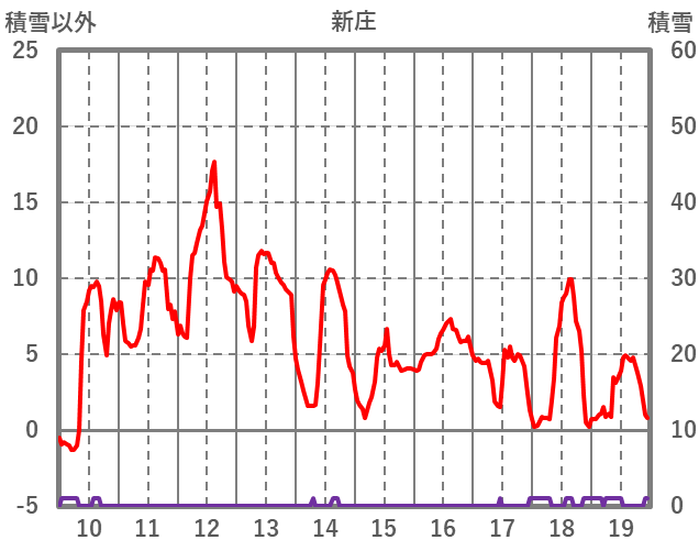| 日 | 時 | 気温 | 降水 | 風向/風速 | 日照 | 積雪 | 降雪 |