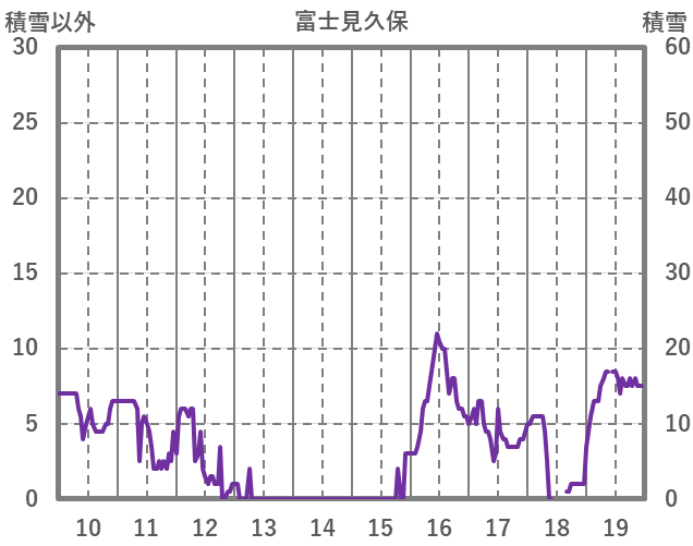 | 日 | 時 | 気温 | 降水 | 風向/風速 | 日照 | 積雪 | 降雪 |