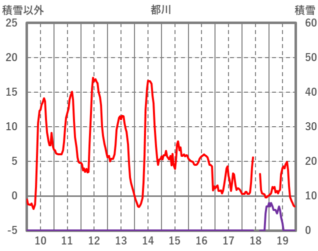 | 日 | 時 | 気温 | 降水 | 風向/風速 | 日照 | 積雪 | 降雪 |