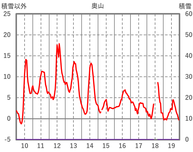 | 日 | 時 | 気温 | 降水 | 風向/風速 | 日照 | 積雪 | 降雪 |