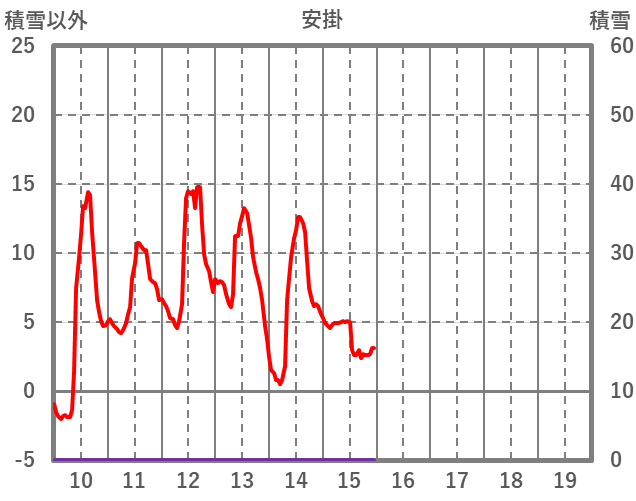 | 日 | 時 | 気温 | 降水 | 風向/風速 | 日照 | 積雪 | 降雪 |