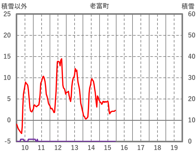| 日 | 時 | 気温 | 降水 | 風向/風速 | 日照 | 積雪 | 降雪 |