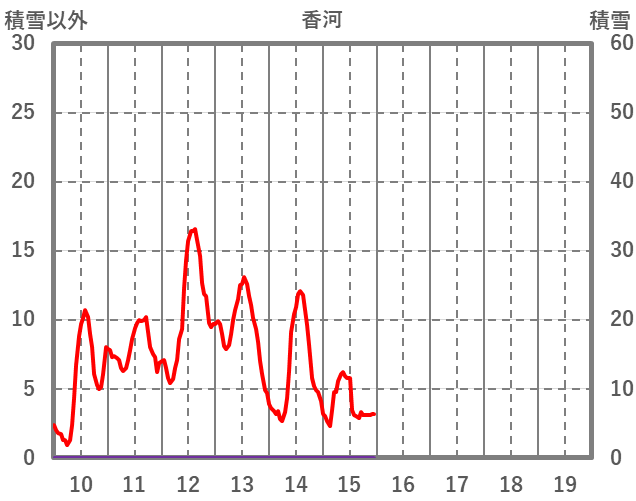 | 日 | 時 | 気温 | 降水 | 風向/風速 | 日照 | 積雪 | 降雪 |