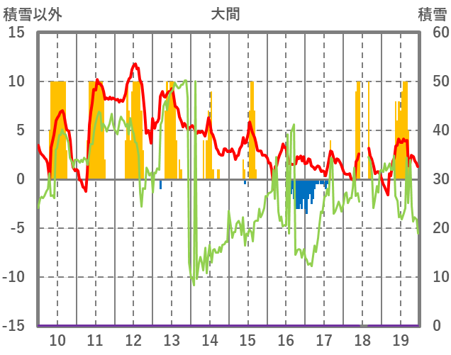 | 日 | 時 | 気温 | 降水 | 風向/風速 | 日照 | 積雪 | 降雪 |