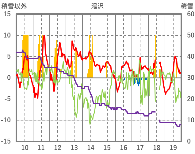 | 日 | 時 | 気温 | 降水 | 風向/風速 | 日照 | 積雪 | 降雪 |