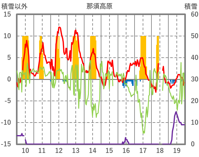 | 日 | 時 | 気温 | 降水 | 風向/風速 | 日照 | 積雪 | 降雪 |