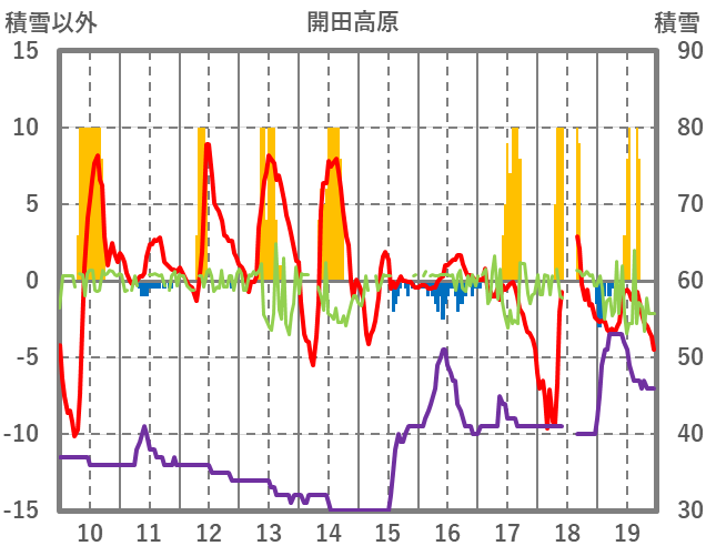 | 日 | 時 | 気温 | 降水 | 風向/風速 | 日照 | 積雪 | 降雪 |