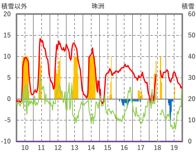 | 日 | 時 | 気温 | 降水 | 風向/風速 | 日照 | 積雪 | 降雪 |