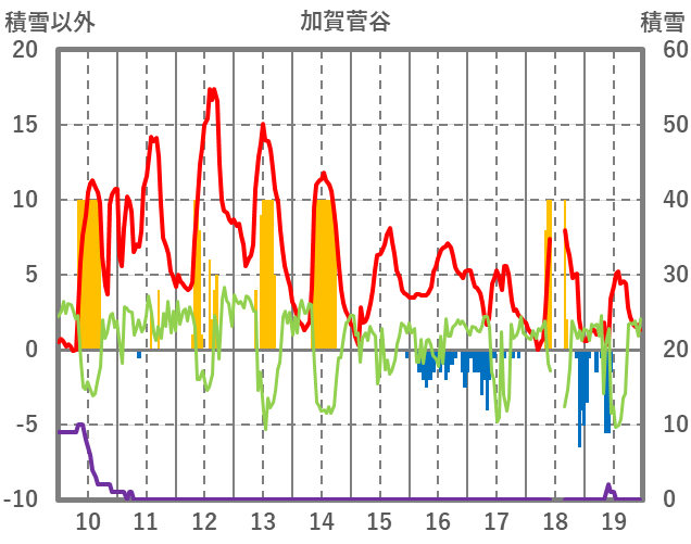 | 日 | 時 | 気温 | 降水 | 風向/風速 | 日照 | 積雪 | 降雪 |