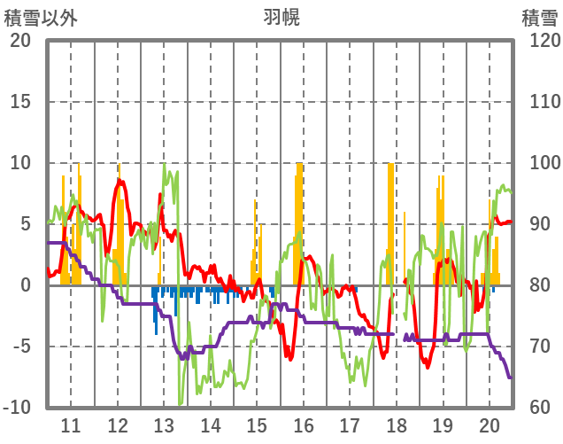| 日 | 時 | 気温 | 降水 | 風向/風速 | 日照 | 積雪 | 降雪 |