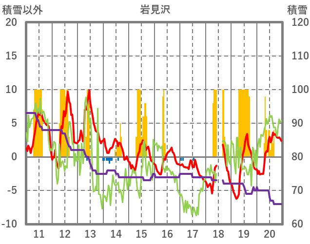 | 日 | 時 | 気温 | 降水 | 風向/風速 | 日照 | 積雪 | 降雪 |