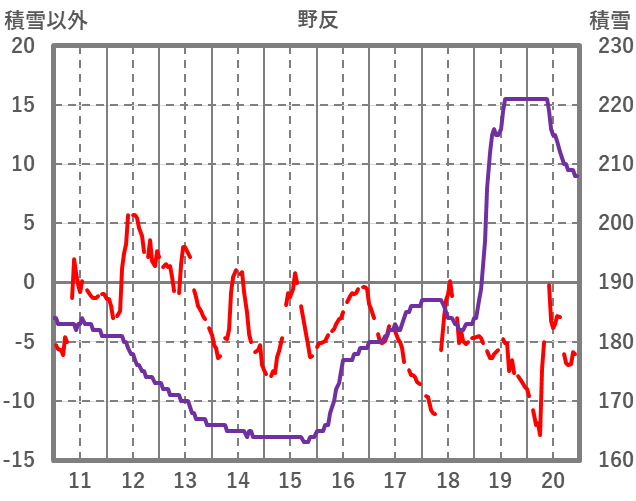 | 日 | 時 | 気温 | 降水 | 風向/風速 | 日照 | 積雪 | 降雪 |