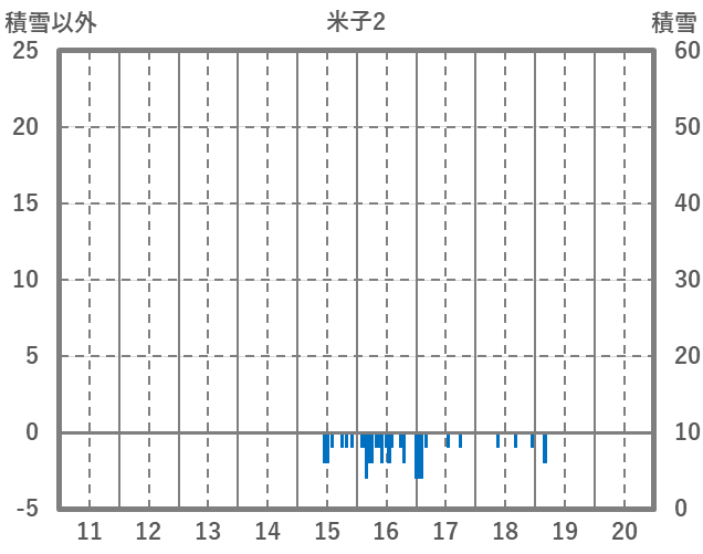 | 日 | 時 | 気温 | 降水 | 風向/風速 | 日照 | 積雪 | 降雪 |