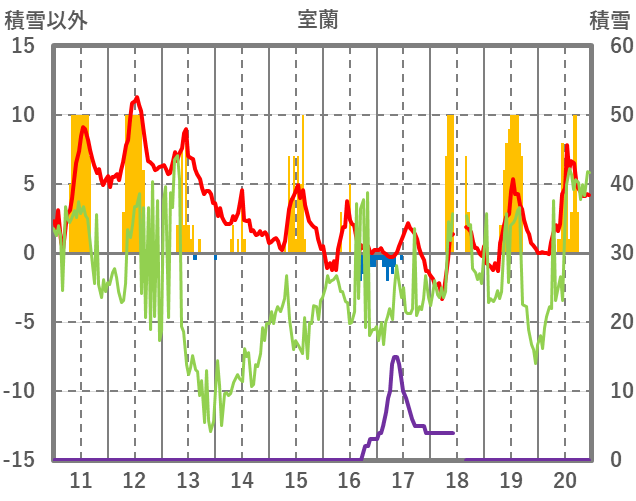 | 日 | 時 | 気温 | 降水 | 風向/風速 | 日照 | 積雪 | 降雪 |