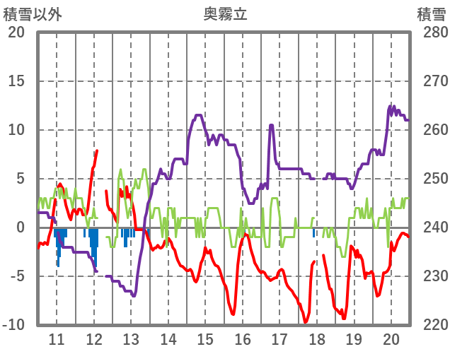 | 日 | 時 | 気温 | 降水 | 風向/風速 | 日照 | 積雪 | 降雪 |
