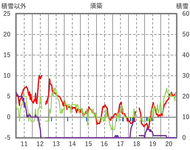 | 日 | 時 | 気温 | 降水 | 風向/風速 | 日照 | 積雪 | 降雪 |