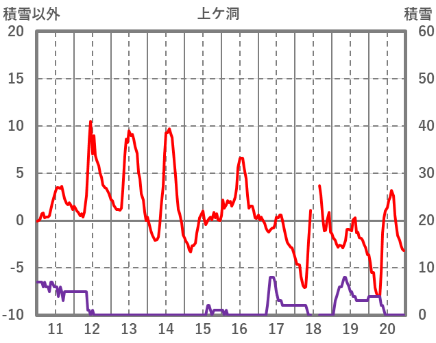 | 日 | 時 | 気温 | 降水 | 風向/風速 | 日照 | 積雪 | 降雪 |