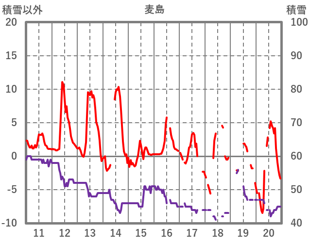 | 日 | 時 | 気温 | 降水 | 風向/風速 | 日照 | 積雪 | 降雪 |