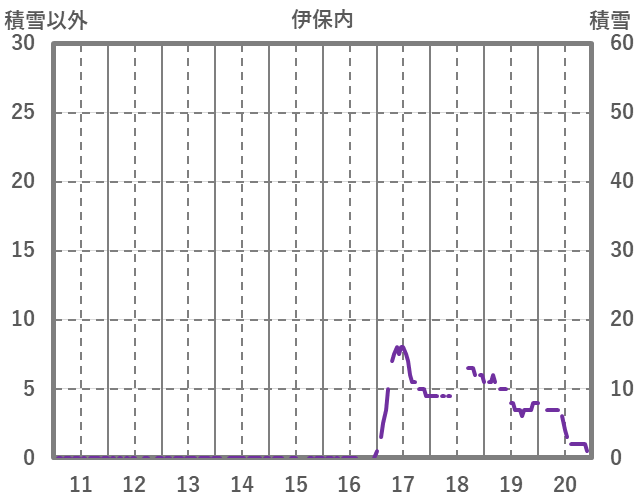 | 日 | 時 | 気温 | 降水 | 風向/風速 | 日照 | 積雪 | 降雪 |