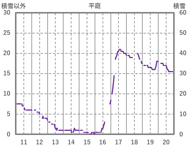 | 日 | 時 | 気温 | 降水 | 風向/風速 | 日照 | 積雪 | 降雪 |