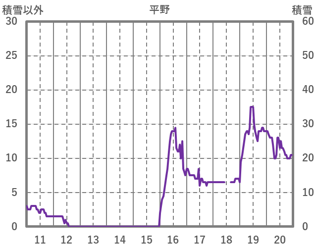 | 日 | 時 | 気温 | 降水 | 風向/風速 | 日照 | 積雪 | 降雪 |