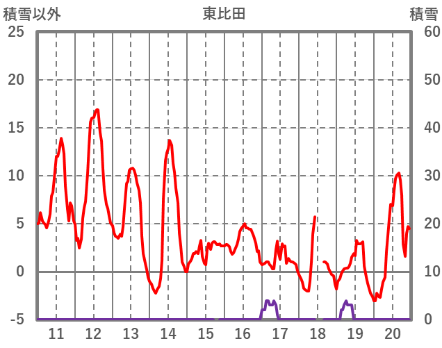 | 日 | 時 | 気温 | 降水 | 風向/風速 | 日照 | 積雪 | 降雪 |
