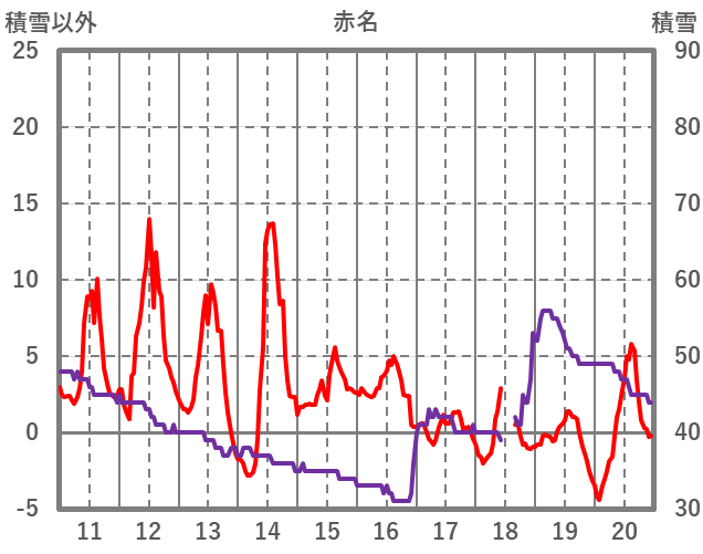 | 日 | 時 | 気温 | 降水 | 風向/風速 | 日照 | 積雪 | 降雪 |
