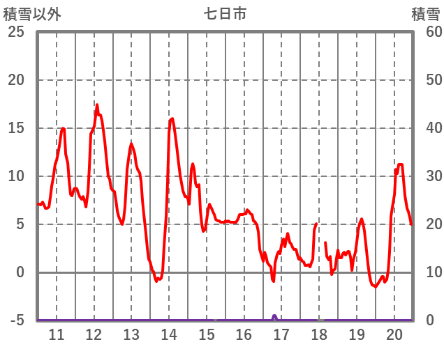 | 日 | 時 | 気温 | 降水 | 風向/風速 | 日照 | 積雪 | 降雪 |