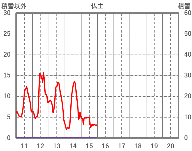 | 日 | 時 | 気温 | 降水 | 風向/風速 | 日照 | 積雪 | 降雪 |