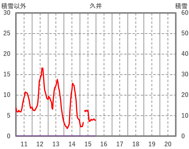 | 日 | 時 | 気温 | 降水 | 風向/風速 | 日照 | 積雪 | 降雪 |