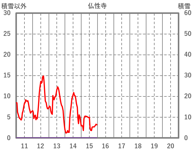 | 日 | 時 | 気温 | 降水 | 風向/風速 | 日照 | 積雪 | 降雪 |