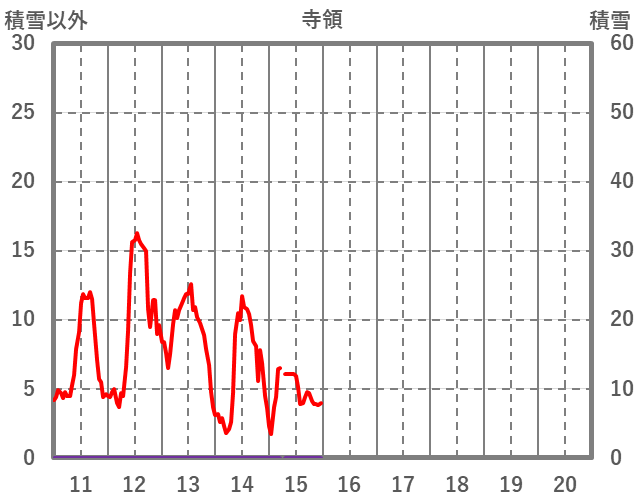 | 日 | 時 | 気温 | 降水 | 風向/風速 | 日照 | 積雪 | 降雪 |
