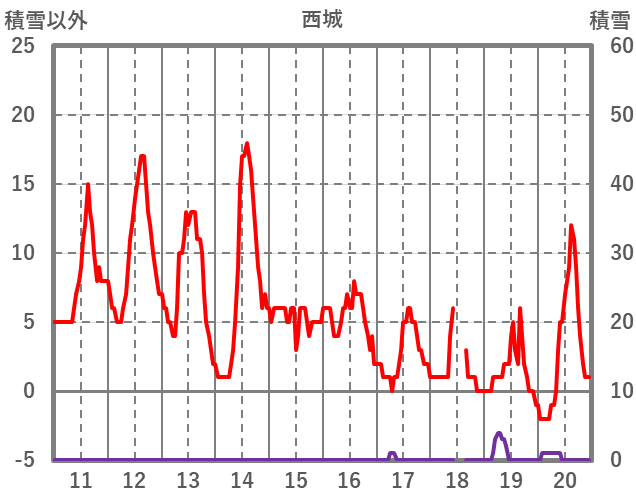 | 日 | 時 | 気温 | 降水 | 風向/風速 | 日照 | 積雪 | 降雪 |