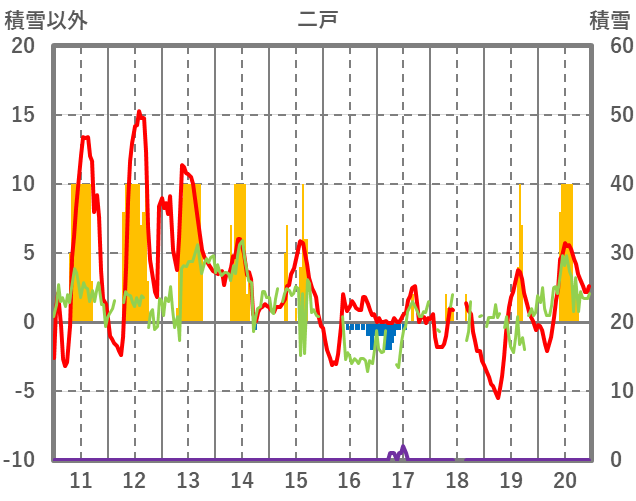 | 日 | 時 | 気温 | 降水 | 風向/風速 | 日照 | 積雪 | 降雪 |