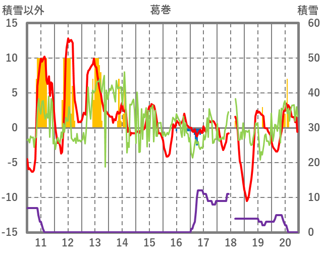 | 日 | 時 | 気温 | 降水 | 風向/風速 | 日照 | 積雪 | 降雪 |