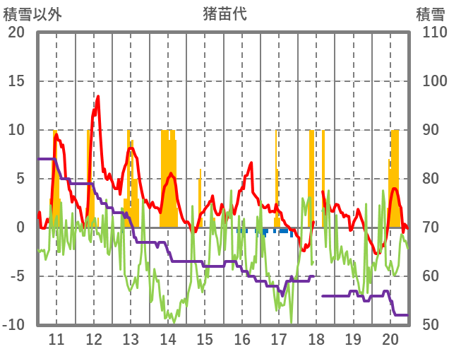 | 日 | 時 | 気温 | 降水 | 風向/風速 | 日照 | 積雪 | 降雪 |