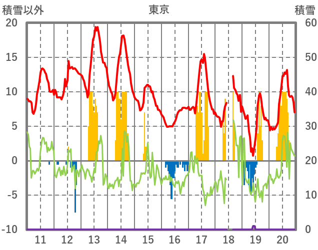 | 日 | 時 | 気温 | 降水 | 風向/風速 | 日照 | 積雪 | 降雪 |
