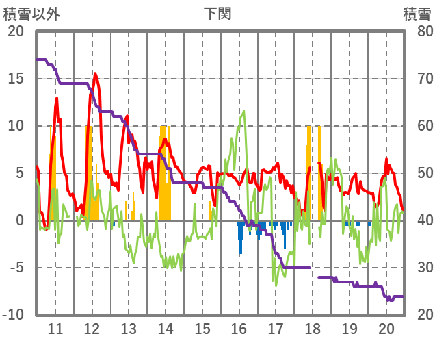 | 日 | 時 | 気温 | 降水 | 風向/風速 | 日照 | 積雪 | 降雪 |