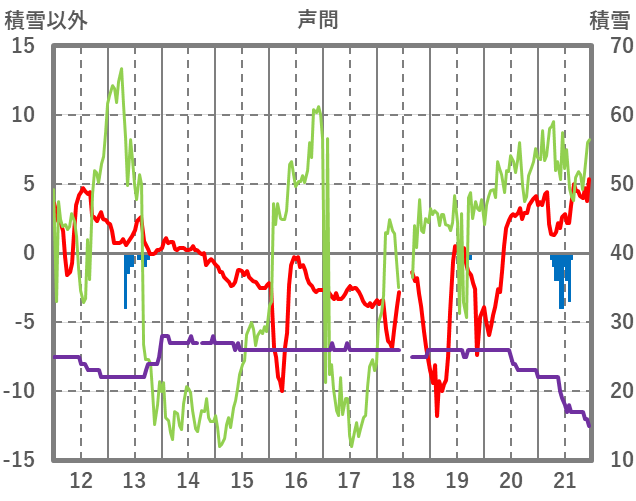 | 日 | 時 | 気温 | 降水 | 風向/風速 | 日照 | 積雪 | 降雪 |