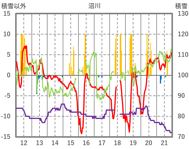 | 日 | 時 | 気温 | 降水 | 風向/風速 | 日照 | 積雪 | 降雪 |