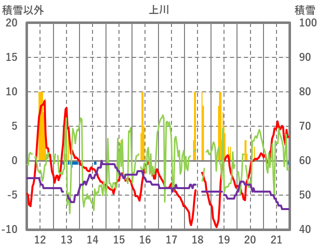 | 日 | 時 | 気温 | 降水 | 風向/風速 | 日照 | 積雪 | 降雪 |