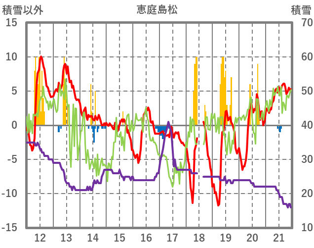 | 日 | 時 | 気温 | 降水 | 風向/風速 | 日照 | 積雪 | 降雪 |