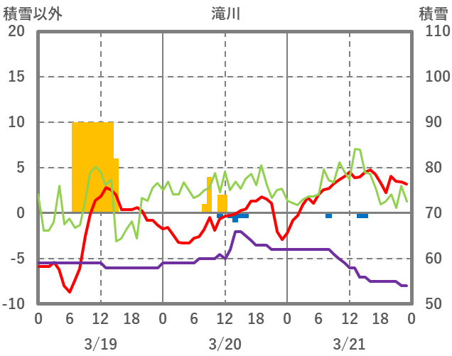 | 日 | 時 | 気温 | 降水 | 風向/風速 | 日照 | 積雪 | 降雪 |