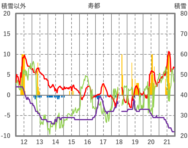 | 日 | 時 | 気温 | 降水 | 風向/風速 | 日照 | 積雪 | 降雪 |