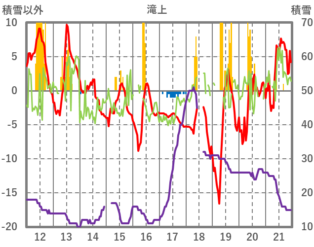 | 日 | 時 | 気温 | 降水 | 風向/風速 | 日照 | 積雪 | 降雪 |