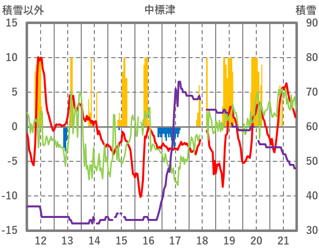 | 日 | 時 | 気温 | 降水 | 風向/風速 | 日照 | 積雪 | 降雪 |