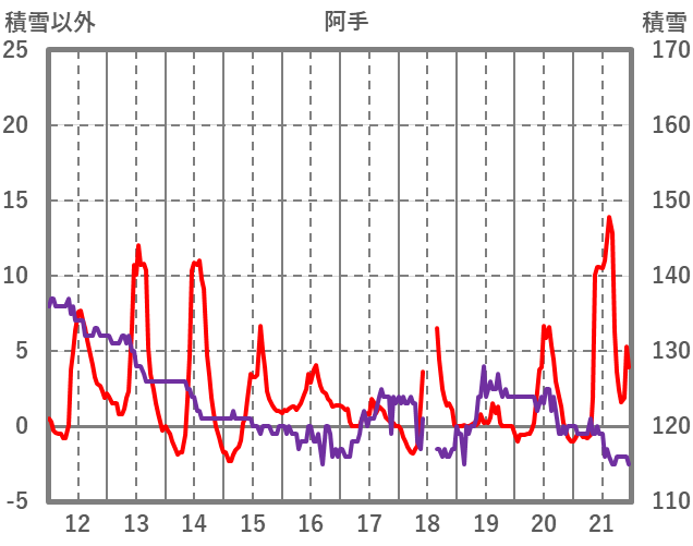 | 日 | 時 | 気温 | 降水 | 風向/風速 | 日照 | 積雪 | 降雪 |