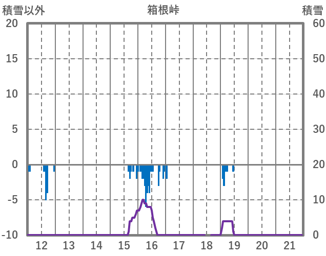 | 日 | 時 | 気温 | 降水 | 風向/風速 | 日照 | 積雪 | 降雪 |
