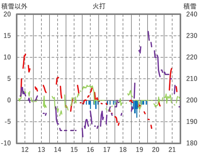 | 日 | 時 | 気温 | 降水 | 風向/風速 | 日照 | 積雪 | 降雪 |