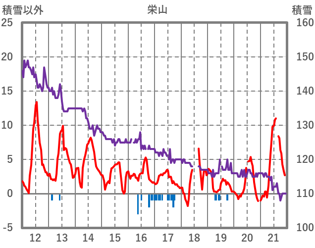 | 日 | 時 | 気温 | 降水 | 風向/風速 | 日照 | 積雪 | 降雪 |